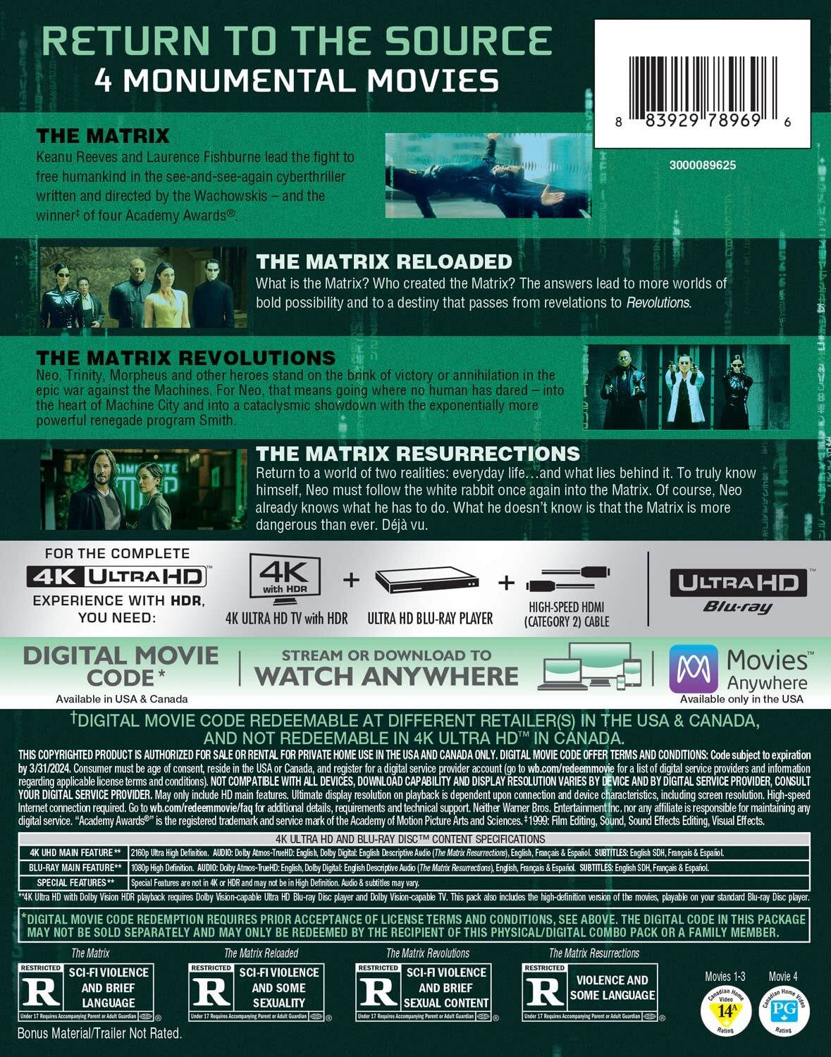 Matrix 4-Film Deja Vu Collection 4K